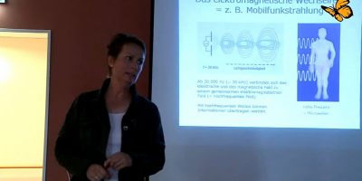 Brigitte Becker demonstriert die Wirkung von elektromagnetischer Strahlung auf menschliche Körper.